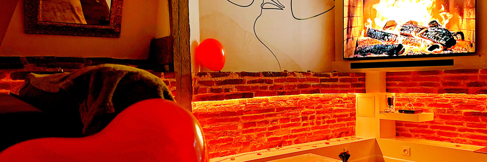 Venez vivre une parenthèse enchantée au cœur de la Haute-Garonne, à quelques kilomètres de Toulouse, dans notre chambre avec jacuzzi privatif. Que vous soyez en quête d'une escapade romantique pour célébrer un moment spécial ou simplement désireux de vous évader du quotidien, notre love room offre un cadre idyllique pour se ressourcer et vivre une expérience unique. Nichée au sein d'un château historique, mais dotée d'un aménagement moderne, notre chambre conjugue à merveille le charme d'antan et le confort contemporain. Offrez-vous un séjour inoubliable, entre luxe et intimité, où chaque détail est pensé pour votre bien-être et votre plaisir.